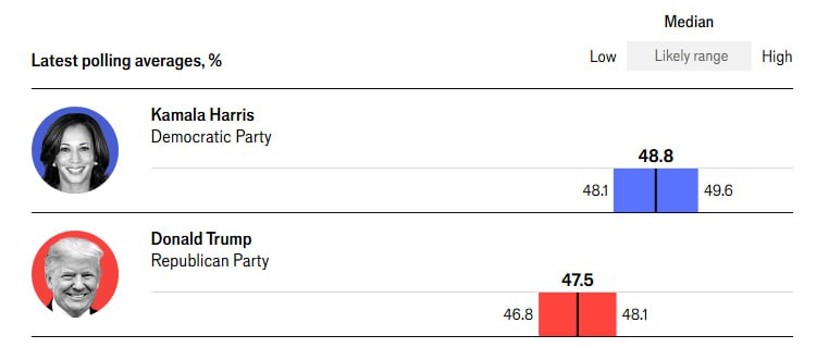 به گزارش اقتصاد ایران، طبق پیش بینی دو رسانه اکونومیست و گاردین کامالا هریس با اختلاف بسیار ناچیز می تواند از دونالد ترامپ پیشی گرفته و برنده انتخابات ریاست جمهوری ۲۰۲۴ ایالات متحده آمریکا باشد.