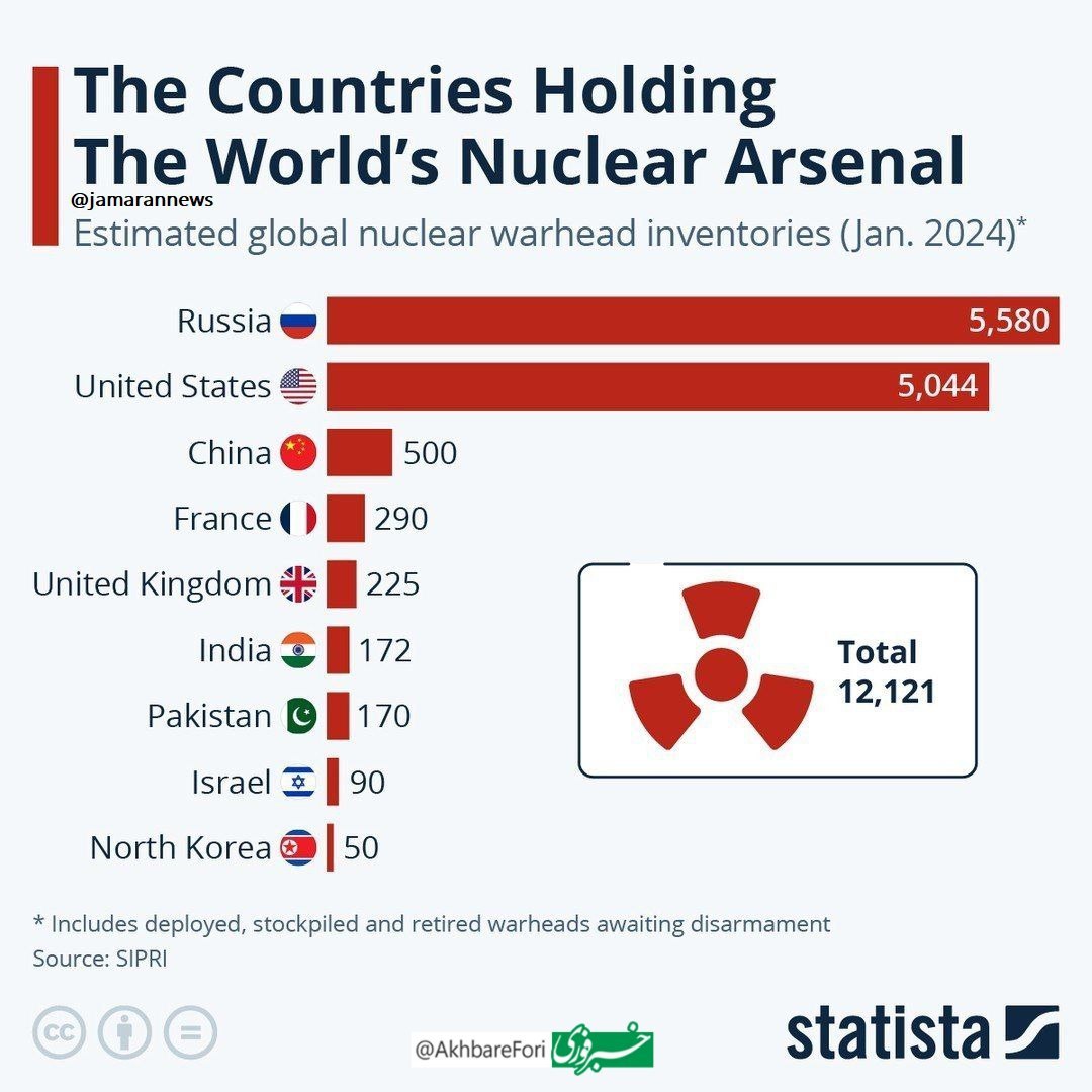 به گزارش اقتصاد ایران، سوالی که این روزها به ذهن مردم جهان می رسد این است که بمب های اتم جهان در دستان چه کسانی هستند؟ در این باره و با اولویت، نگاهی می اندازیم بر لیست کشورهایی که دربردارنده بمب های اتمی در جهان هستند.