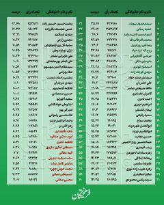 اشتراک گذاری توییتر چاپ سیاسی تازهترین جدول آرای تهران + تعداد و درصد آرا بر اساس شمارش آرای حدود ۸۰ درصد صندوقهای تهران، اگر این روند ادامه یابد، ۱۰ نفر از این لیست به مجلس راه مییابند و احتمالا از نفر ۱۱ الی ۵۰ راهی دور دوم خواهند شد. ۱۳ اسفند ۱۴۰۲۰ منبع: اقتصادنیوز کپی لینک لینک کپی شد