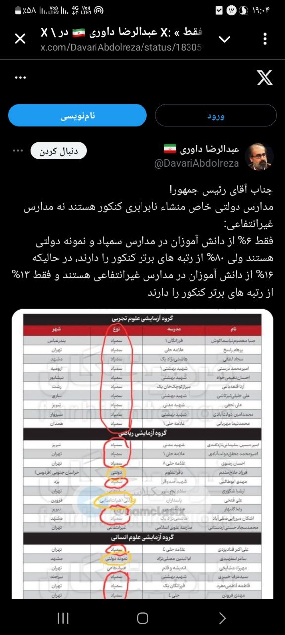 عبدالرضا داوری که روزانه چندین توئیت در حمایت از دولت چهاردهم در شبکه اجتماعی ایکس منتشر می کند.