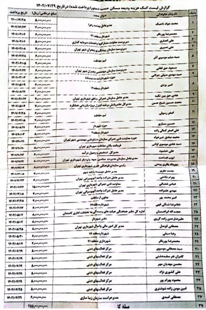 کمک هزینه ۲۵.۵ میلیارد تومانی زاکانی به برخی مدیران شهری