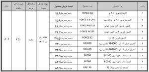 در گروه کامیونتهای فورس، مدلهای ۳.۸ تن بنزینی و نسخه دوگانهسوز آن به همراه کامیون فورس ۶ تن در دو تیپ کابین خوابدار و بدون خواب ارائه شدهاند. همچنین مدل فورس ۱۲ تن نیز در فهرست فروش حضور دارد.