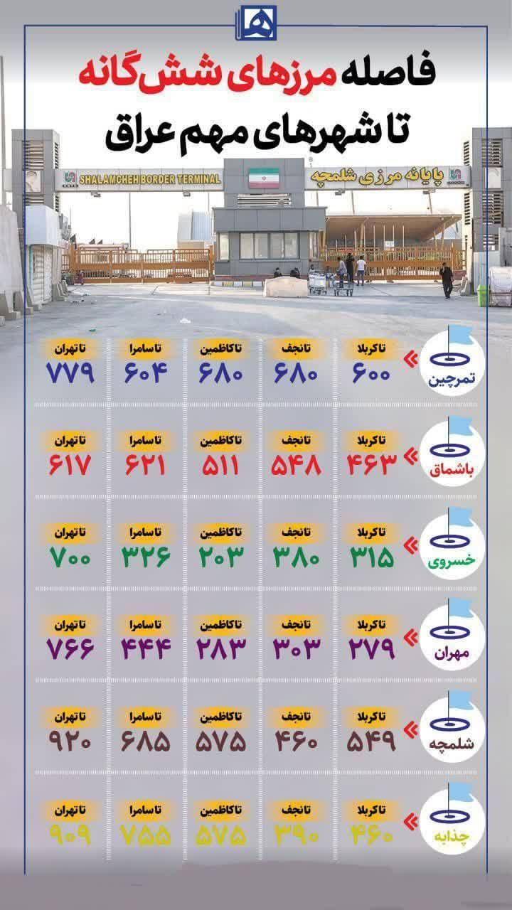 دانستن فاصله مرزهای مهران، خسروی، شلمچه، چذابه، تمرچین و باشماق تا شهرهای عراق (نجف، کربلا، کاظمین و سامرا) از جمله اطلاعاتی است که میتواند به زائران در ایام اربعین کمک کند.