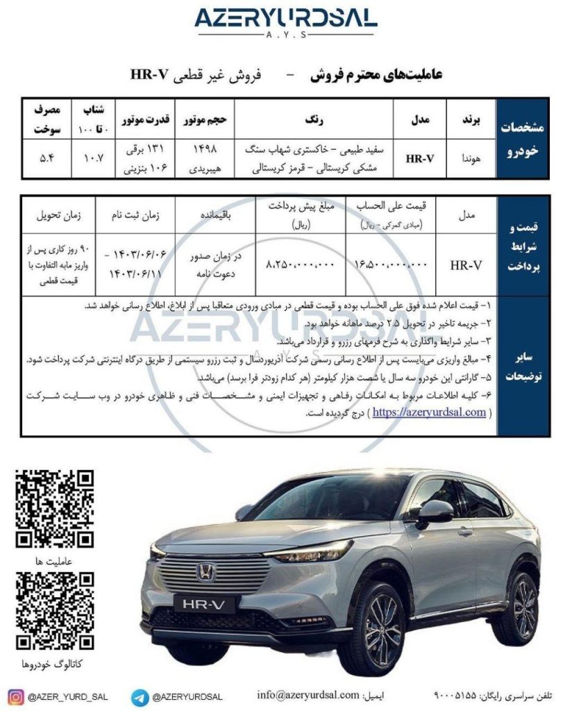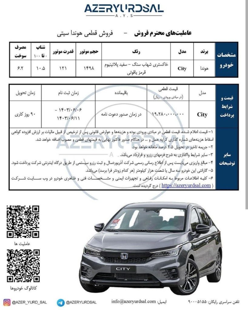 شرکت آذریوردسال فروش دو خودرو هوندا سیتی و هوندا HR-V را آغاز کرد.