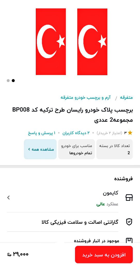 به گزارش اقتصاد ایران، برایم سوال بود برچسبهای پلاک خودرو با پرچم ترکیه برای حذف پرچم ایران از پلاک خودرو توسط پانترکها از کجا تهیه میشود؟ دوستی خبر داد دیجی کالا این کالای ضدملی را به فروش می رساند!