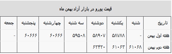 قیمت یورو در تاریخ ۱۰ بهمن ۱۴۰۲