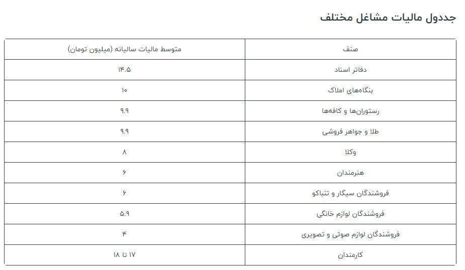 رئیس سازمان امور مالیاتی کشور میزان مالیات اصناف مختلف را اعلام کرد.
