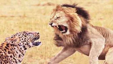 جدال نفس گیر شیر و پلنگ بر سر شکار